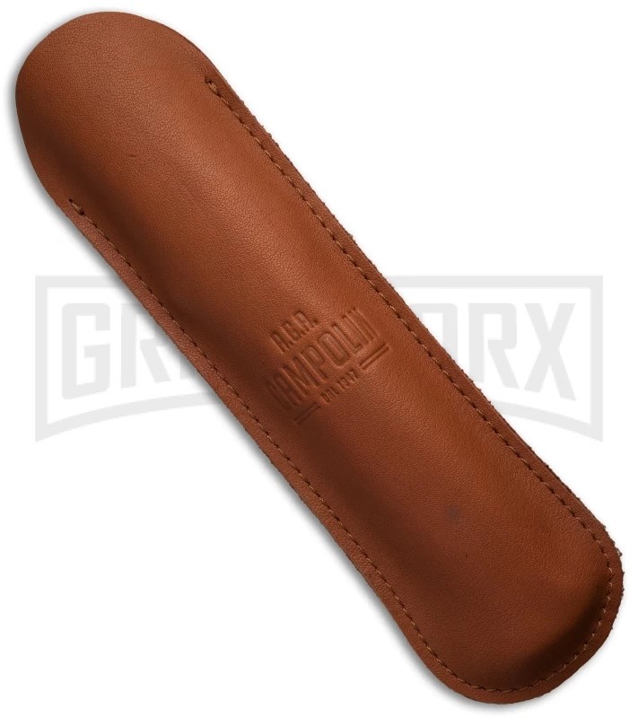 An impressive interpretation of the classic swinguard from A.G.A. Campolin. This knife measures 13 inches when opened and has a stylized swinguard. This knife features a polished bayonet stainless steel blade and a brass firing button. The rich ebony wood handles are offset with brass pins over brass liners. The blade has fast, smooth action in spite of its size. The unique swinguard design gives the knife an almost medieval look. This is a must have for any serious Italian knife collector.