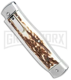 Mikov 241 Predator Double Bolster Stag Automatic Leverlock Knife