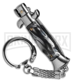 SKM Italian Stiletto Gray Automatic Knife Pink Keychain – Flat Grind