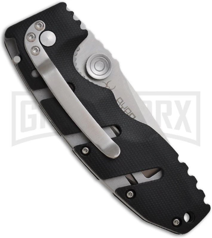The CRKT Ryan Seven is aggressively designed with a heavily notched handle that boasts unique zytel scales with upper and lower grooves so you can be sure of a rock solid grasp. The blade has a satin finish with a partially serrated edge and oversized dual thumb studs for easier operation when wearing gloves. The steel liner lock frame is complemented with CRKT’s patented LAWKS safety that transforms the knife into a virtual fixed blade. Includes pocket clip for tip-down carry.