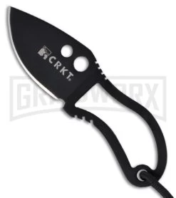 Weighing in at less than an ounce, the skeletonized fixed blade sports a 1.75″ wide-chord drop-point blade with a high flat grind. The high-carbon steel blade has a tactical black finish.