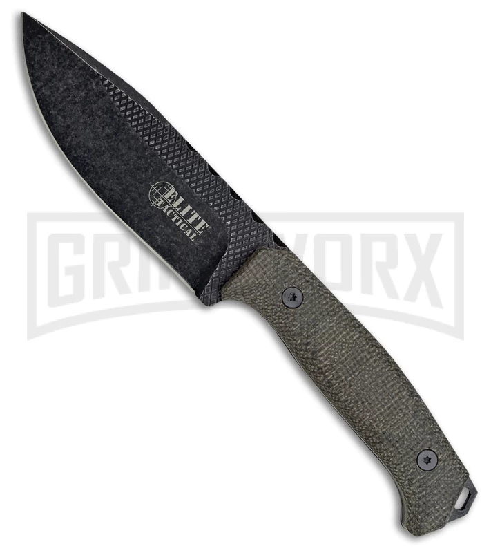 Elite Tactical Small Night Commander Micarta Fixed Blade Knife – Black Stonewash
