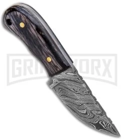 Tallen Miniature Pakka Wood Fixed Blade Knife – Damascus Plain