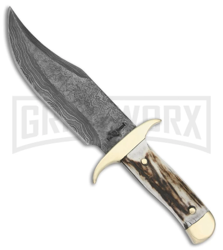 Fox-N-Hound Baby Bowie Stag Fixed Blade Knife – Damascus Plain