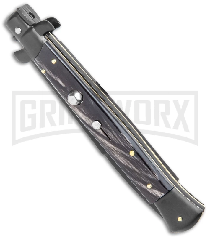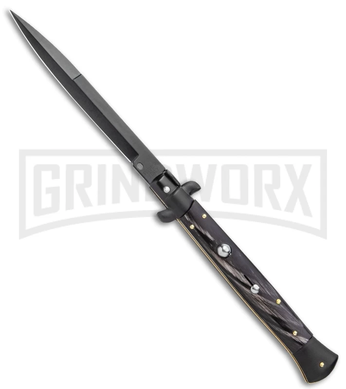 Frank B. 11″ Italian Stiletto Dark Horn Tactical Automatic Knife – Bayonet
