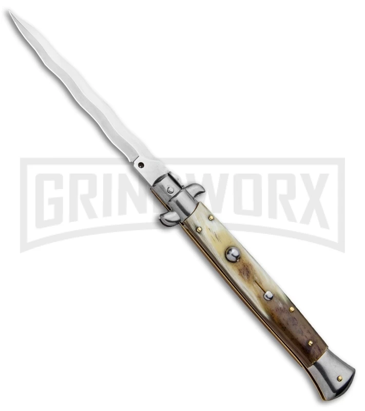 Frank B. 11″ Italian Stiletto Honey Horn Automatic Knife – Kris Polish