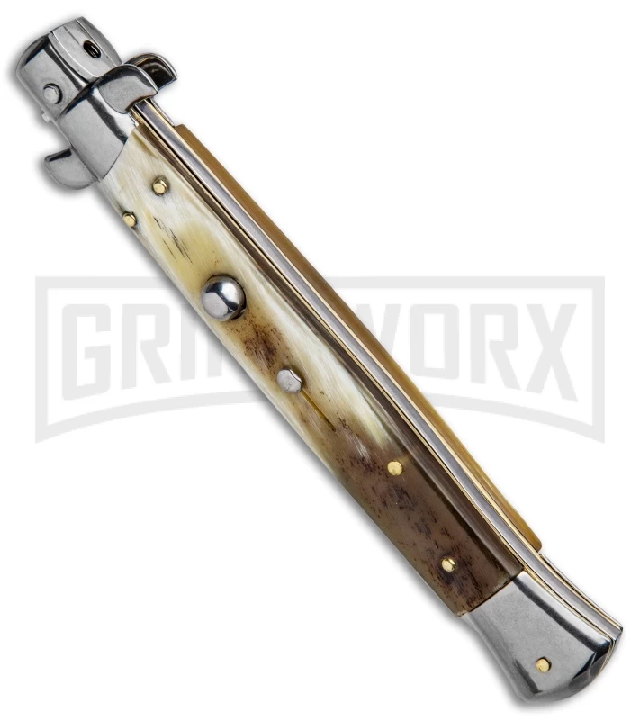Frank B. 9″ Italian Stiletto Honey Horn Automatic Knife – Kris