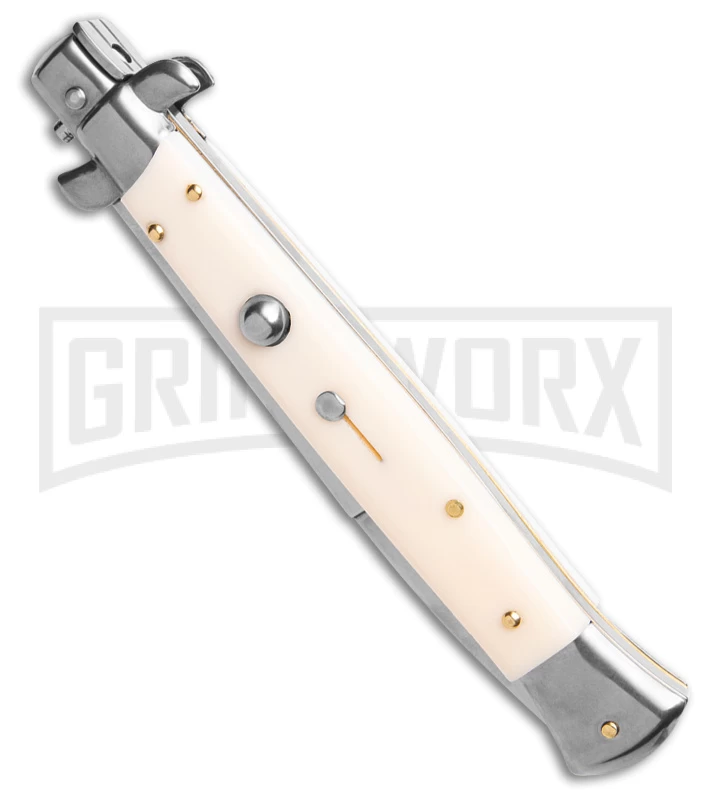 Frank B 7.5″ Italian Stiletto Imitation Ivory Automatic Knife – Polish Bayonet