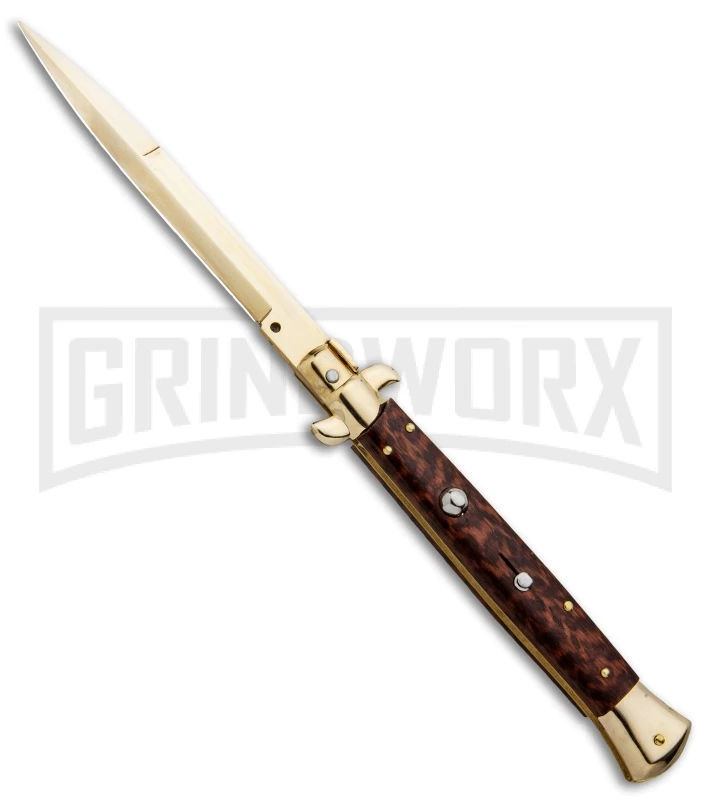 Frank B. 11″ Snakewood Italian Stiletto Gold Plated – Gold Bayo Plain