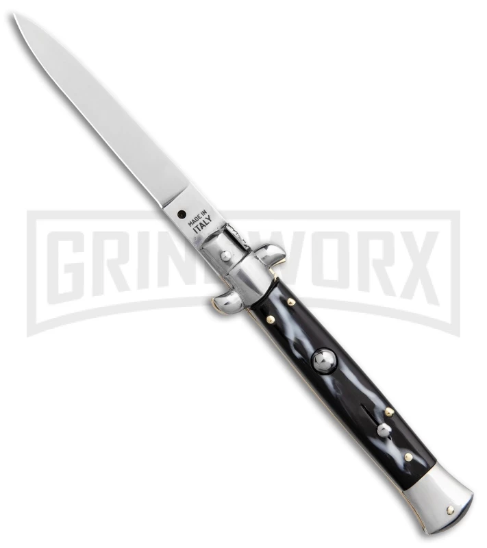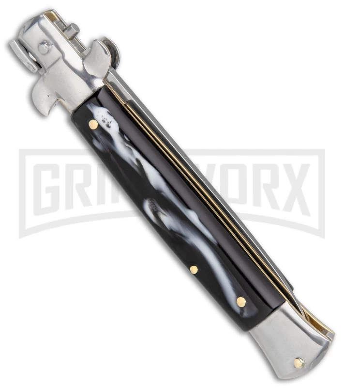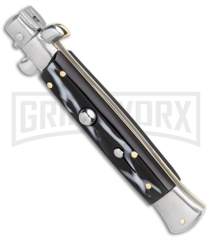 9.5″ Anomaly Stiletto Black Swirl Automatic Knife – Satin Plain