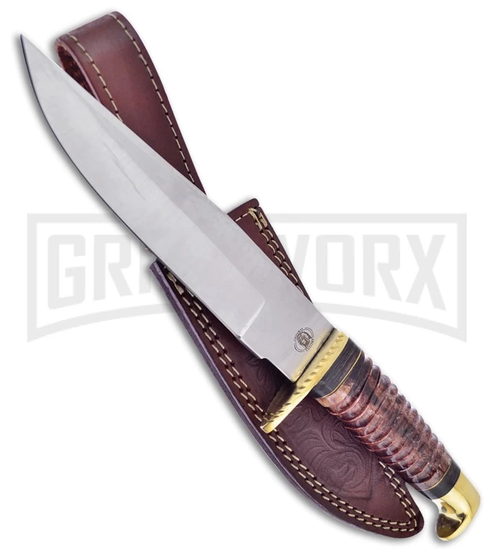 Frost Cutlery Blackhills Brown Leather Fixed Blade Knife – Satin Plain