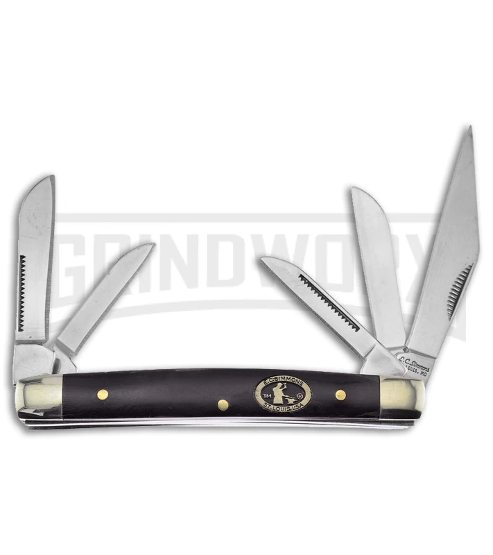 The Frost Cutlery E.C. Simmons Kentucky Congress is a manual folding pocket knife for taking on you day to day cutting needs. It features a large clip point, twin sheepsfoot, and twin pen blades with mirror finishes and nail nick openers. The handle is made of black buffalo horn with nickel silver bolsters and an inlay shield. Like most traditional pocket knives it has a slip joint.
