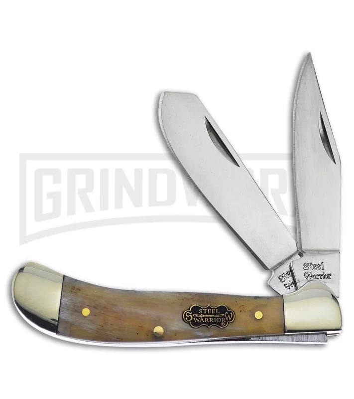 Frost Cutlery Steel Warrior Saddlehorn Brown Ox Horn Pocket Knife