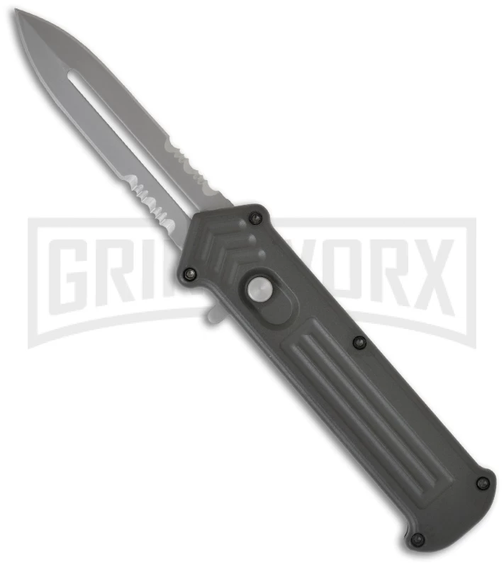 The Arrow OTF knife is a clone of the Dalton Cupid OTF automatic knife. The Arrow is an excellent OTF knife and surpasses all other single action knives in terms of quality and performance. The handle has a powder coated gray finish and has a pocket clip for easy carry. The 440 blade has a bead blast finish. Honestly, your friends won’t even know it’s a clone! A must have knife for any collection or great for everyday use.