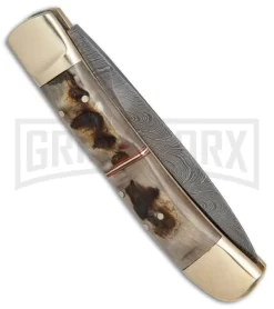 9″ Damascus Leverlock Stag Automatic Knife – Dagger Damascus Plain