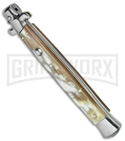 Frank B. 13″ Italian Stiletto Honey Horn Automatic Knife – Bayonet