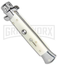 Frank B. 9″ Sim Ivory Automatic Stiletto Knife – Kris Satin Plain