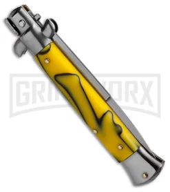 SKM 9″ Italian Stiletto Yellow Swirl Killer Bee Automatic Knife – Bayonet
