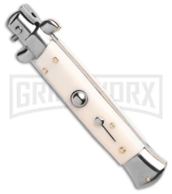 SKM 5.5″ Italian Stiletto White Pearlex Automatic Knife – Spear Point