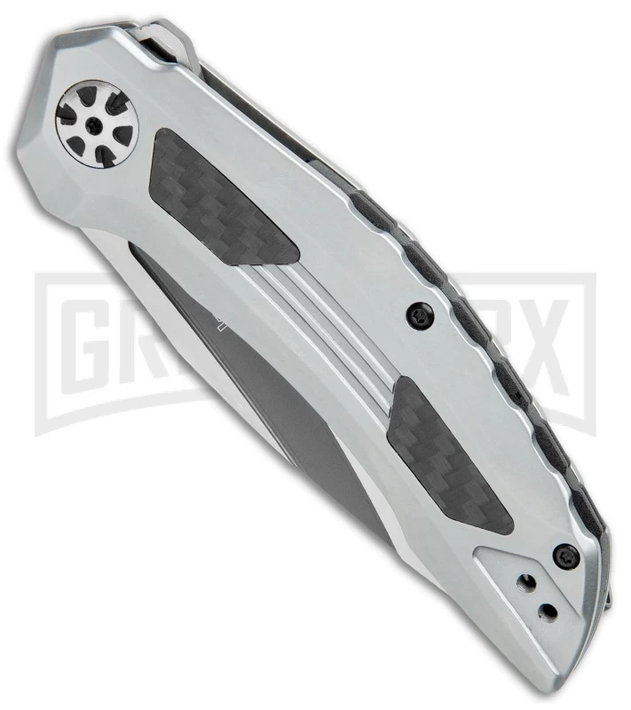 The Kershaw Norad is a beautiful design, and it’s packed with features too. The blade is made of D2 tool steel, which is super tough and wear resistance, and the handle is made of stainless steel with carbon fiber inlays. The blade opens with the thumb groove that allows easy one-handed opening without anything obstructing the cutting path.