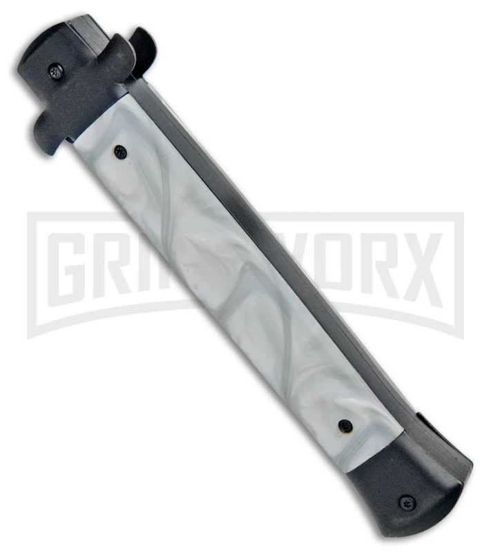This Mago OTF model features a satin finished bayonet blade and a white marble handle and black bolsters.