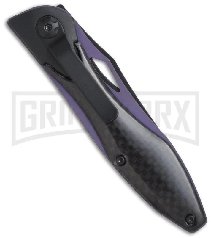 The Classiest Act is a slim and sleek knife from Mantis. The handle features a titanium liner lock frame with a purple anodized finish and carbon fiber onlays. The blade is premium S30V steel with a plain cutting edge and a black finish. The tip-down pocket clip and lightweight design make this an ideal gentleman’s knife for everyday carry.