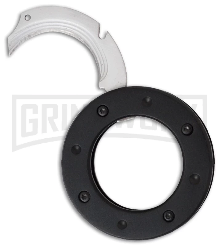 The Cyclops is an innovative and stylish folding neck knife from Mantis Knives. This Cyclops has a black anodized 6061 aluminum frame which also acts as a sheath system for the hawkbill AUS8 steel blade. The Cyclops can be worn around the neck and quickly released by simply pulling on the ring (the blade is locked open via an internal liner lock). With a bit of practice the ring can be quickly reattached to the neck chain. One word: Innovative.
