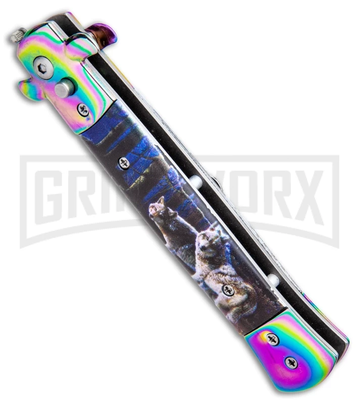 Milano 9″ Stiletto Wolves Automatic Knife – Bayonet Satin