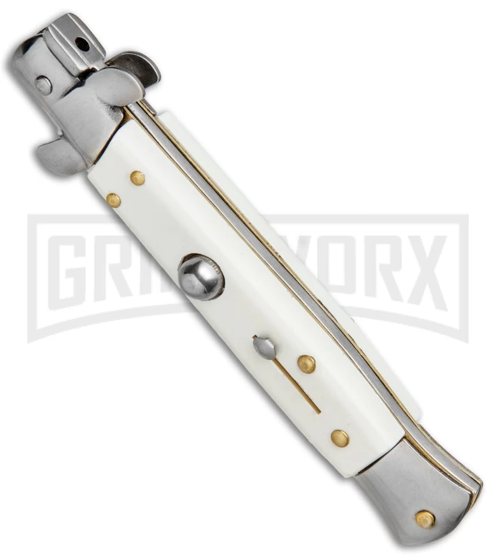 Milano 9″ White Italian Style Automatic Knife – Bayonet Satin