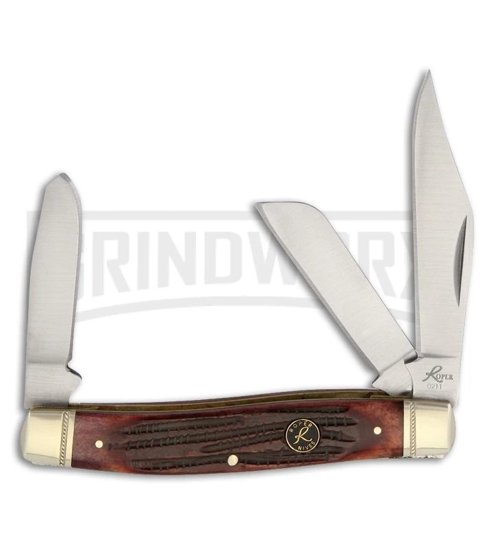 Roper Knives Tobacco Stockman Brown Jigged Bone Pocket Knife