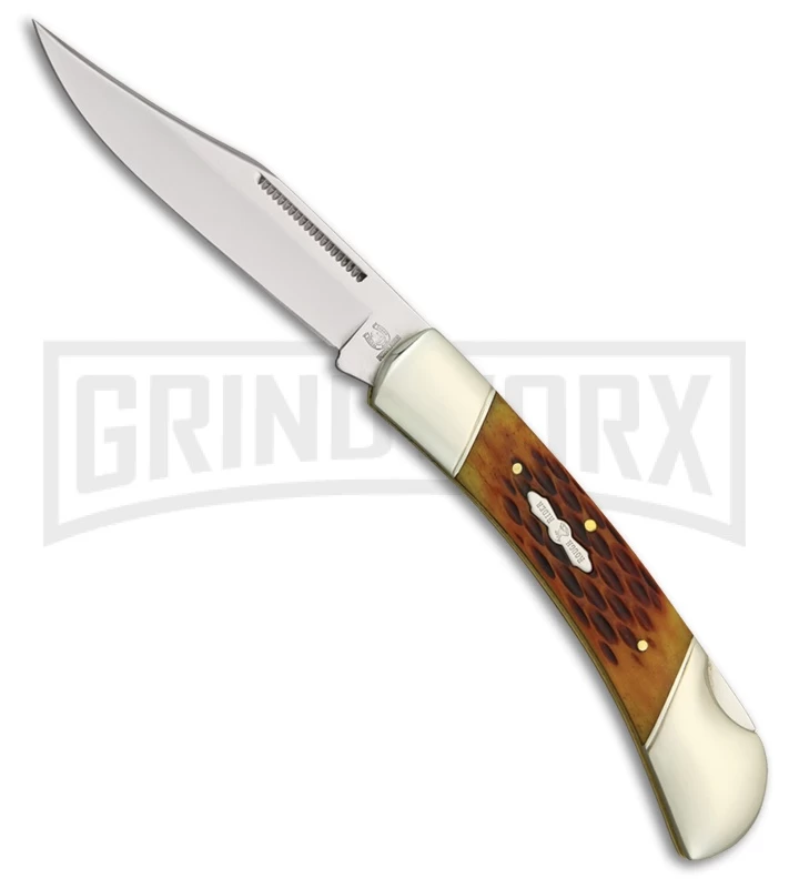 Rough Rider Folding Hunter Lockback Amber Jigged Bone Pocket Knife W/ Sheath