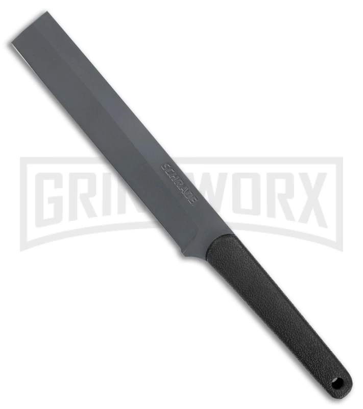 This Schrade FROE model features a gray finished cleaver blade and a black TPE handle.