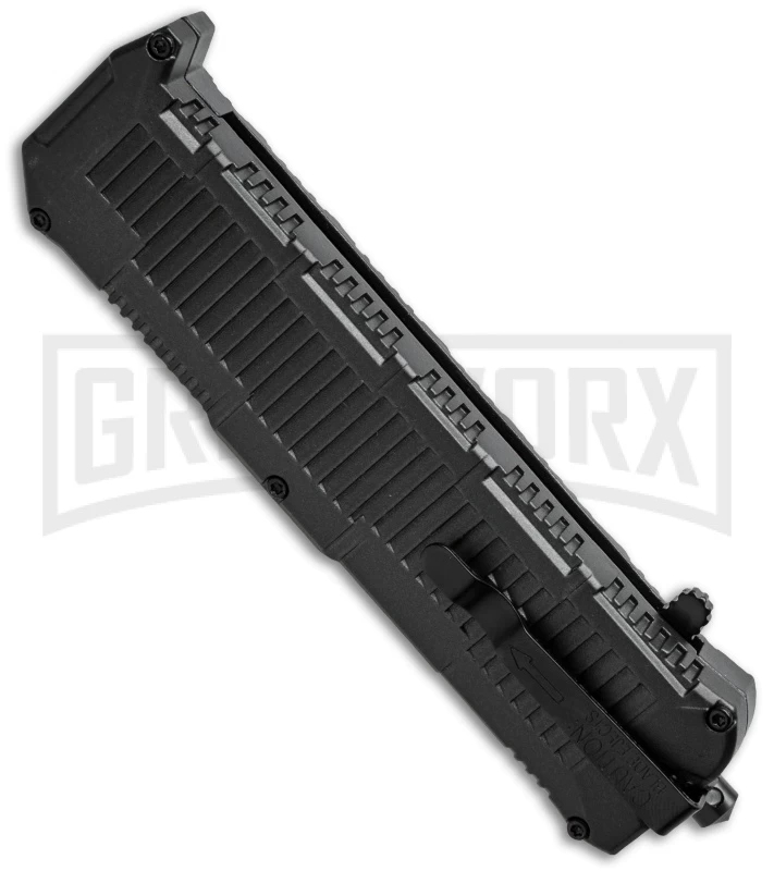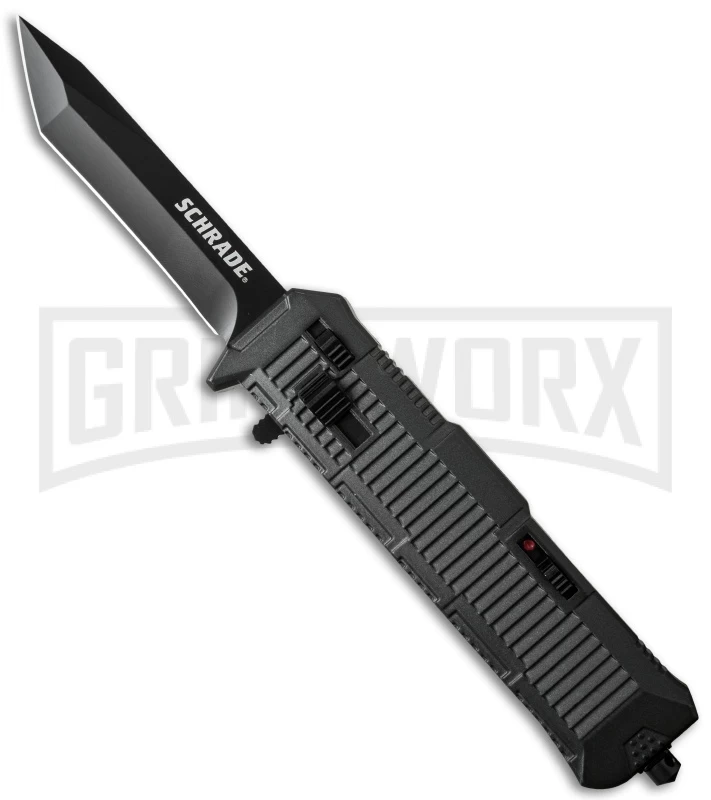 Schrade SCHOTF8TB Viper OTF Black Aluminum Assisted Knife – Tanto Black Plain