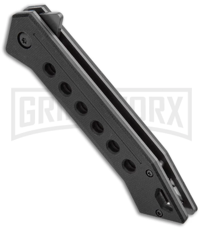 This Schrade U.G. folding knife is outfitted with a black G-10 handle and a tanto blade. The blade opens with a smooth flipper tab. Item includes a tip-up pocket clip and a lanyard hole for comfortable carry.