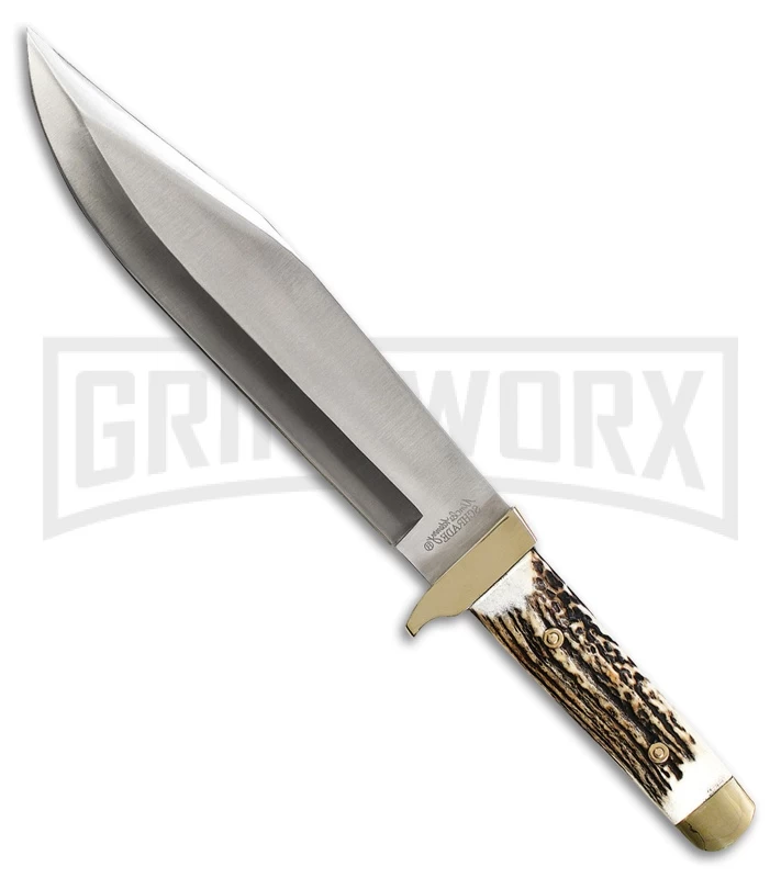 Schrade Uncle Henry Bowie Stag Fixed Blade Knife – Satin Plain