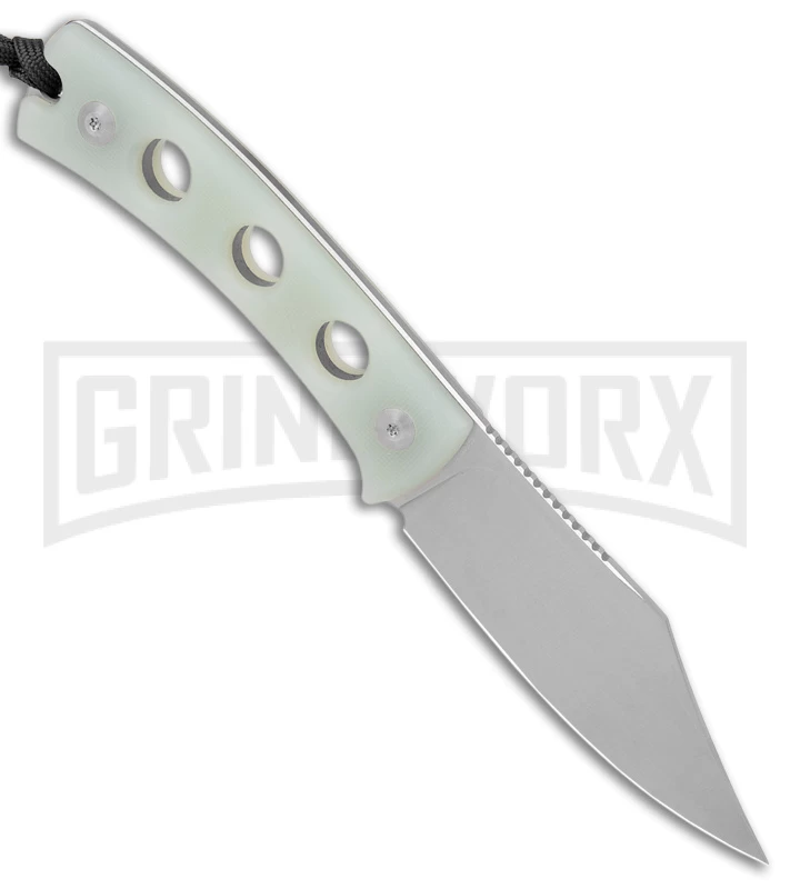 This knife has a jade G-10 handle and a satin blade.