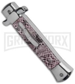 Mago 11″ Wood/Black Italian Stiletto OTF Automatic Knife – Bayo Satin