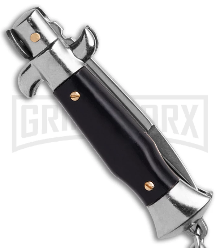 SKM 4″ Italian Stiletto Black Automatic Knife Keychain – Bayo