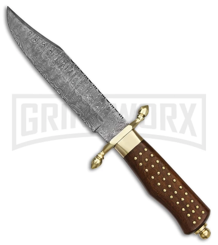 Tallen Bastille Brown Wood Fixed Blade Knife – Damascus Plain