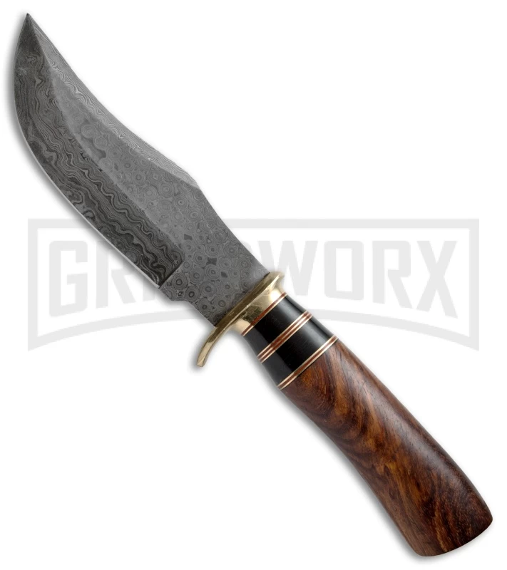 Tallen Damascus Bowie #5 Fixed Blade Knife Wood – Damascus Plain