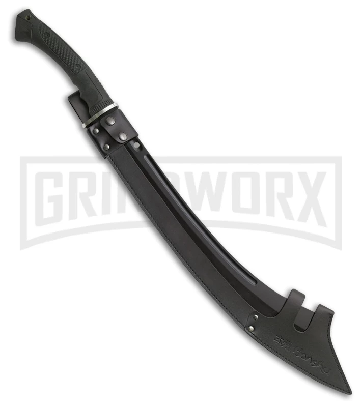 The United Cutlery Honshu War is a long, war sword ideal for recreational and novelty uses. The Honshu War features a black finished, 1060 carbon steel blade. The handle is made of black thermoplastic with a satin finished guard and over-molded rubber grip with lanyard hole. Secure the blade using the leather wrapped scabbard.