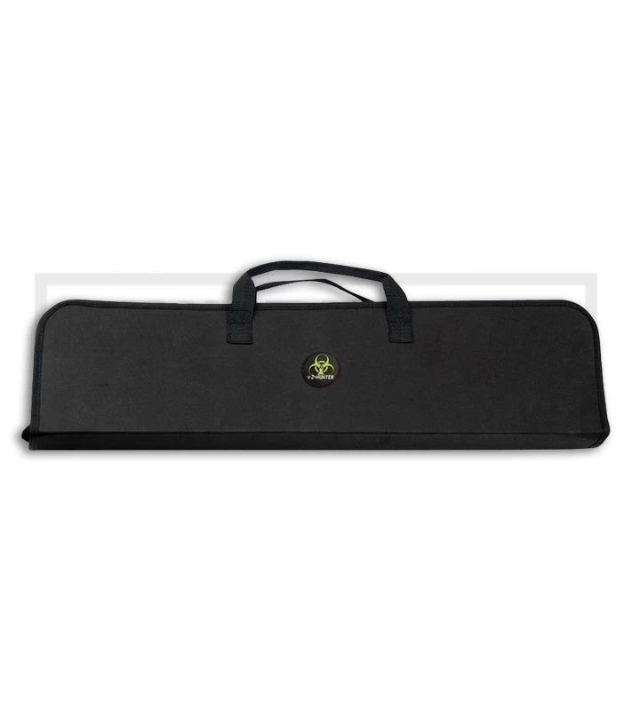 The Z-Hunter Zombie Machete Set has two machetes and one fixed blade knife for tactical use. Each blade can be used for different and bigger problems you may run into while roaming through the woods or jungle seeking zombies or whatever adventure you may choose. All three stainless steel blades are black finished with gray splatter design. The larger machete handle has a black wood handle over a full tang with a black nylon cord wrapped around the center. The compact machete has a gut hook blade and a black rubber handle over a full tang and the survival knife has a black knurled stainless steel handle and a clip point blade with a sawback. Inside the pommel of the survival knife is a compass and black capsule with a small survival kit. Also includes a zippered black nylon carrying case with handles and a rubber patch logo that holds the entire set.